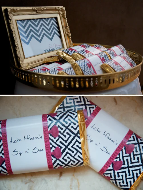 Back when I was pregnant with lil Luke (aka Lukie or “Yuke” as my older son calls him), my sister had been dying to throw me a baby shower and since showers are really not my thing we comprimised and she made a “sip n see” party for my new lil man instead. And what a great concept a sip n see is! Invite your friends and family over, serve some food, sip some drinks and see the baby!