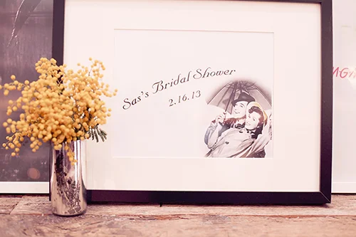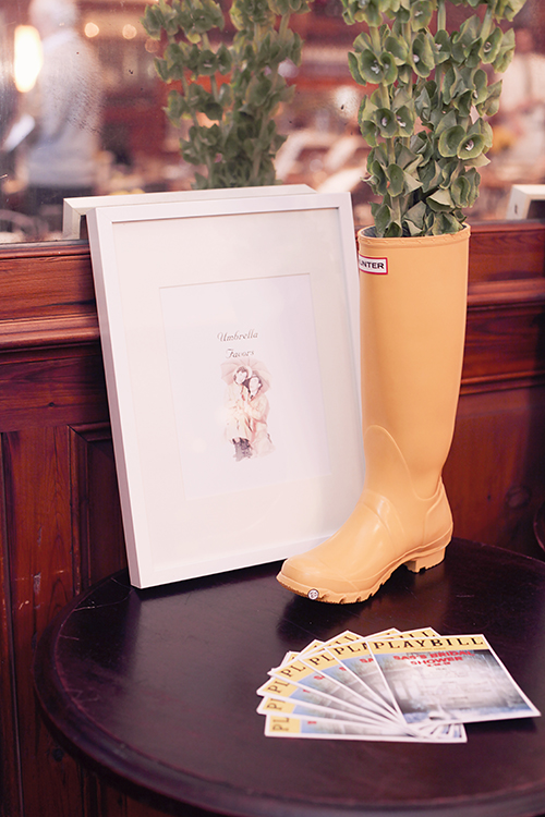 Now for the look of the shower. We also learned that Sas is an actress with a very big personality, so we wanted to incorporate theater into the theme. While on a trip to California last November, I found myself driving in the rain, spotted someone with yellow rain boots on and it came to me….Singin’ in the Rain! It was the perfect thing to tie together a beautiful love story, Broadway, and “showers!” Done and done. We were so very excited to start working on our design ideas.