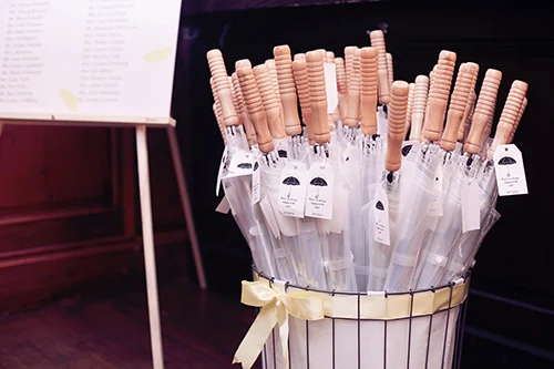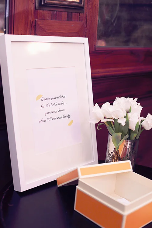Getting married is a very big step in life, and it’s always nice to hear the words and wisdom from women who have many happily married years under their belts! Towards the back of the room, we set up a place for guests to leave the bride a word of advice. We created little umbrella cards for guests to write on, and set out a small yellow box for Sas to collect her advice and take it home with her.