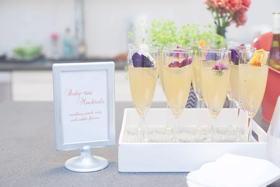 The girls thought of everything…right down to the delicious baby-friendly cocktail…a sparkling peach soda with edible flowers – how amazing! Although I did sneak a few sips of the peach prosecco that was being served! I have to say, I am excited about the thought of a nice cold glass of champagne to celebrate Baby B’s arrival!