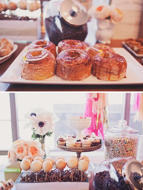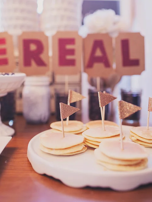 Ilana wanted to keep it small and have it on a Saturday morning. Immediately brunch came to mind and what would be better then pancakes and PJs! Coffee, peach bellinis, Chikalicious cronuts, mini cupcakes from Butter Lane and a cereal bar?! How could you go wrong with that!?