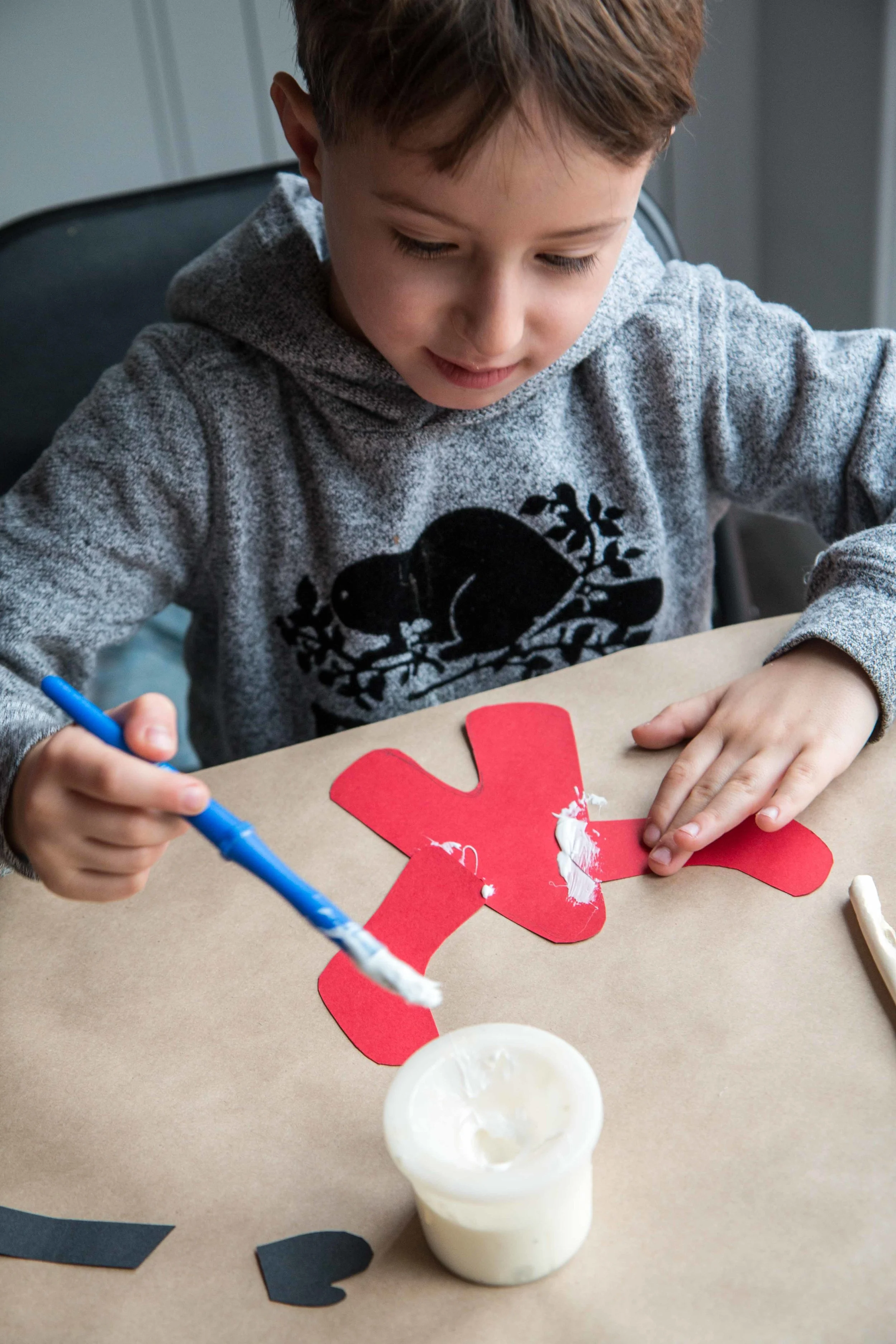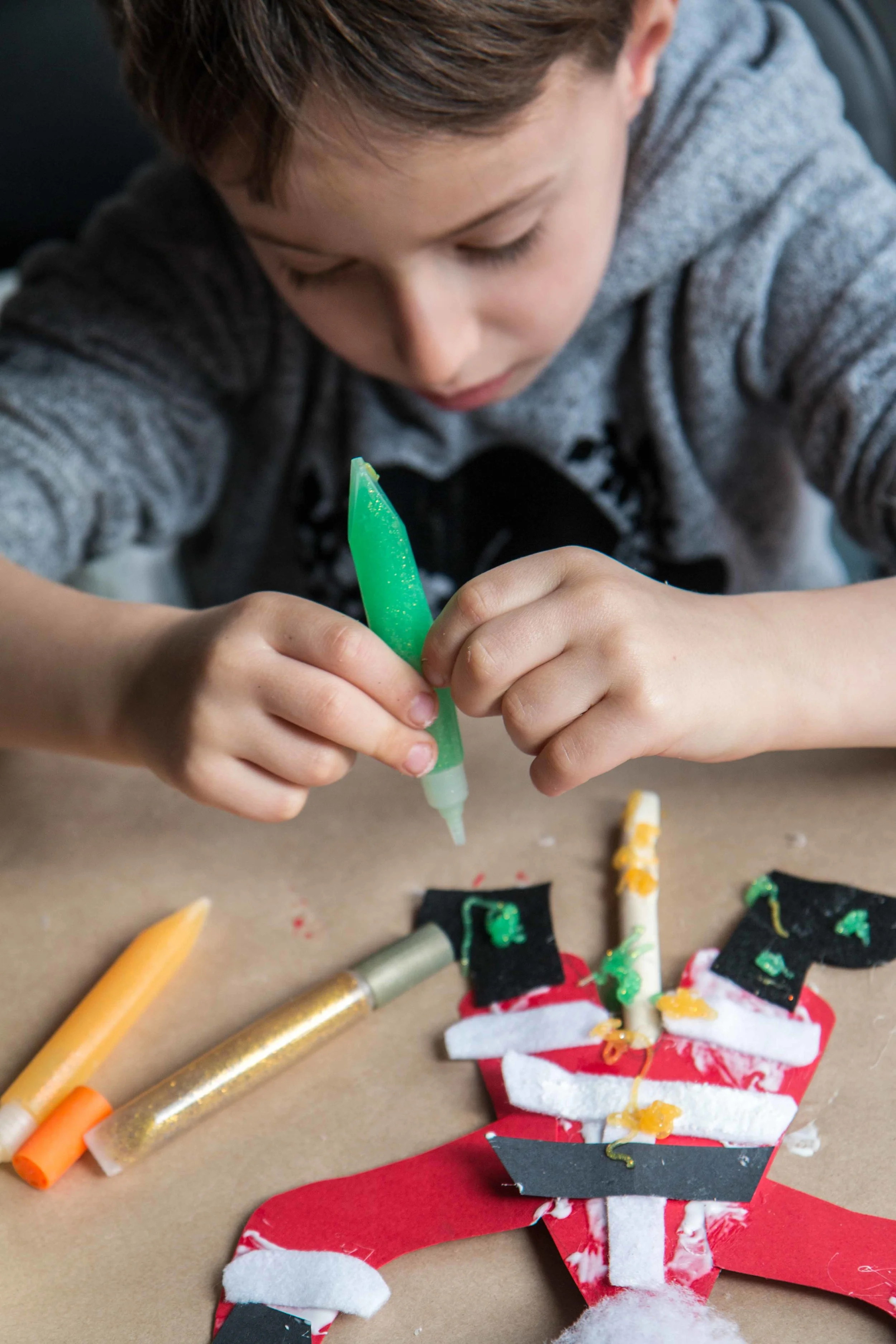 Step 6: Glue the mittens to the end of each arm.