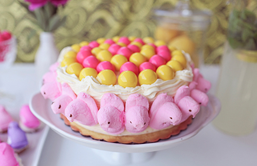 First we thought…it’s a party…parties need cakes…let’s add some Bubblegum! Take your Bubblegum Peeps and attach to the side of your cake with a toothpick and voila! You’ve got a Peeps cake!