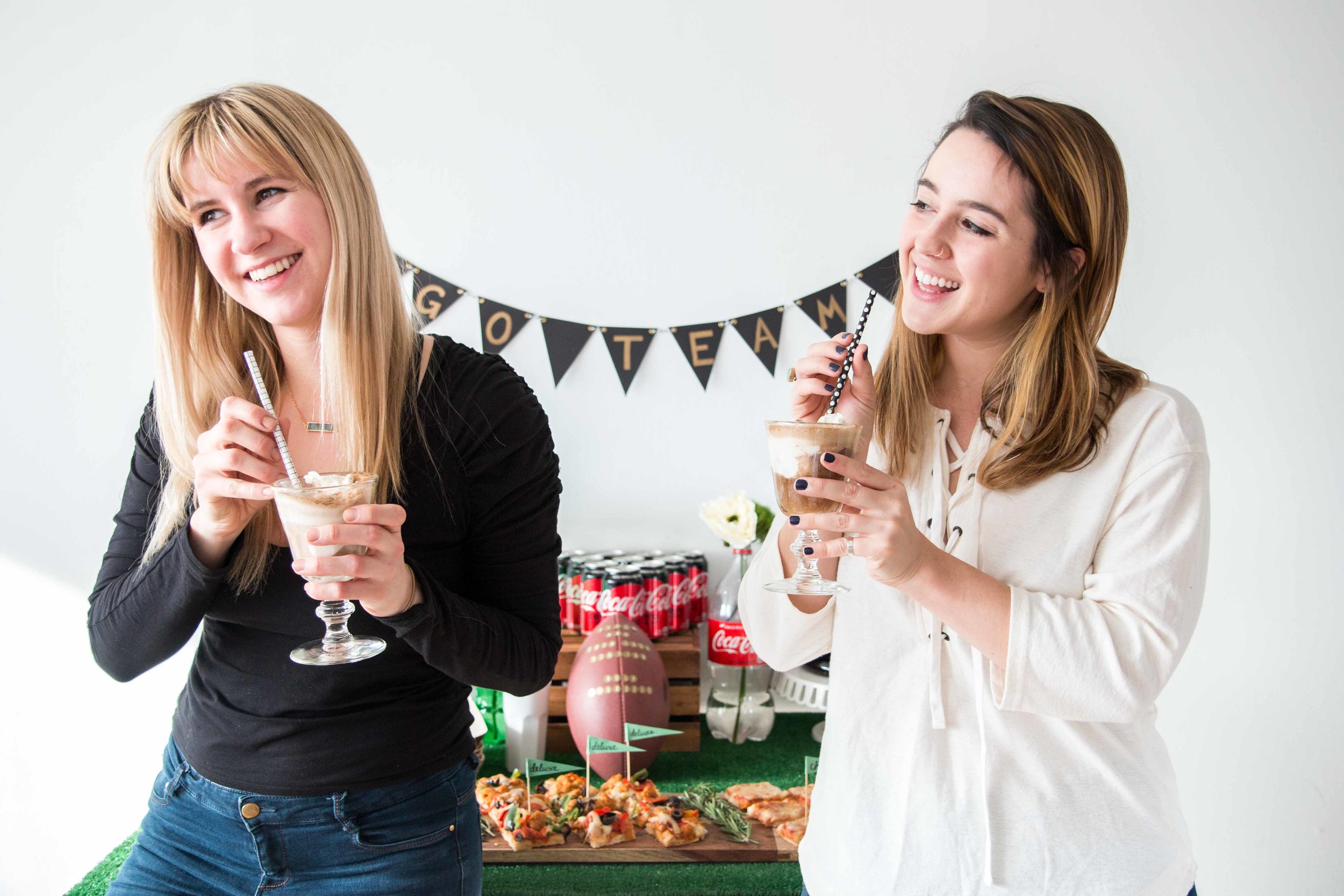 Maggie and I thought it would be fun to host a Game Day Party for our friends this year in our new apartment, complete with festive decor, a variety of pizza and Coca-Cola® beverages, and a Football Themed Bingo that our guests could play together during the game.