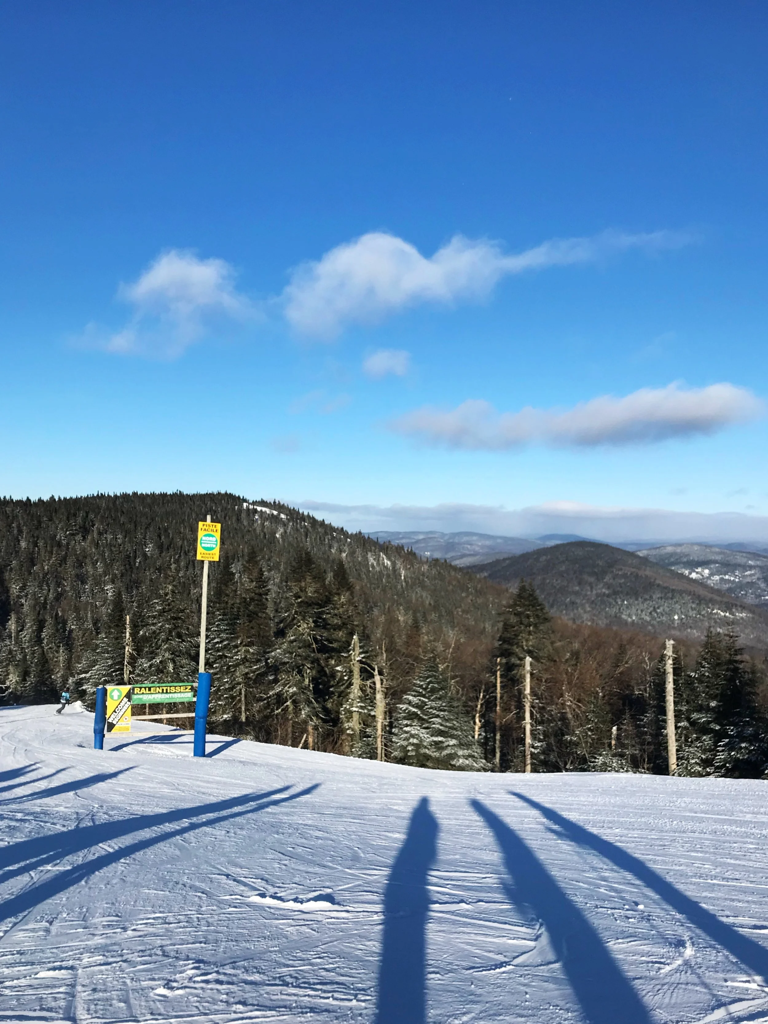 Pat is a relatively new skiier, so we did mostly leisurely green trails, with the occasional blue square peppered in. At Mont Tremblant, you can ski both the North and South side of the mountain, but we stayed mostly on the South side as the sun set more quickly on the North side.