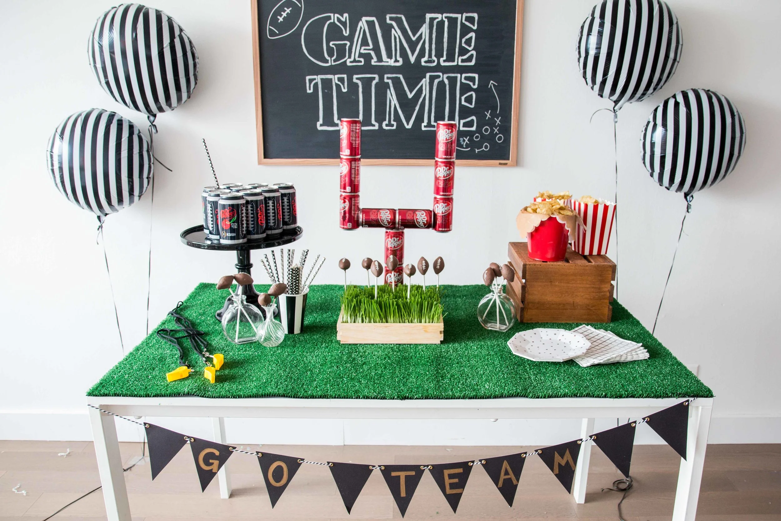 A few referee whistles, striped balloons, black & white cups, and a paper banner tied our tablescape together. Finally it was time for kickoff, and time to party! We snacked on some chips, enjoyed our sweet cake pops, and sipped on Dr Pepper®. Happy fall, and we hope you’re enjoying football season as much as we are! For more inspiration check out Dr Pepper’s tailgating page here.