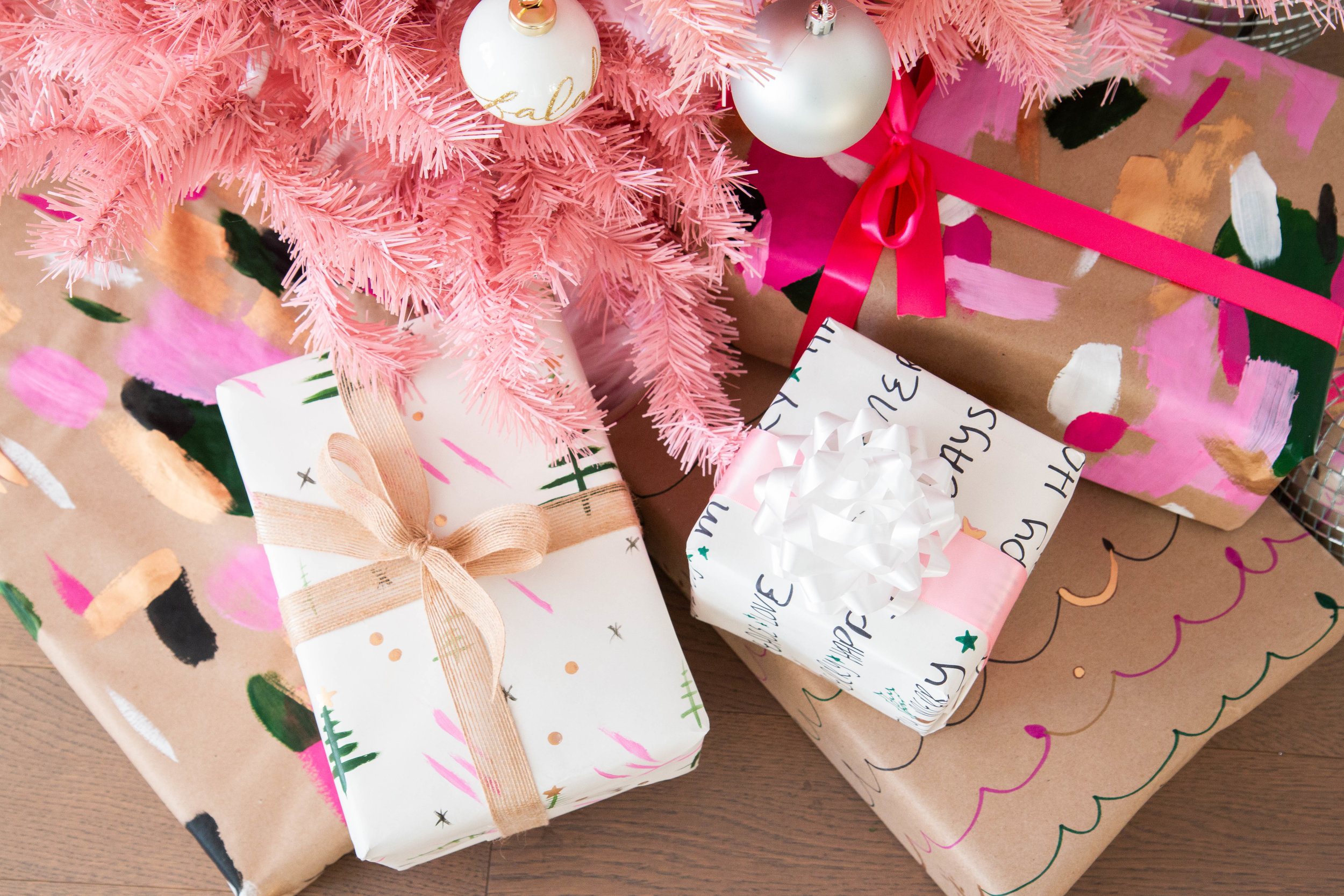 The presents under the tree are JUST as much a decoration as the tree itself- if you make it that way! So once we chose the color scheme for our annual holiday party, we decided to make our wrapping paper match it perfectly.