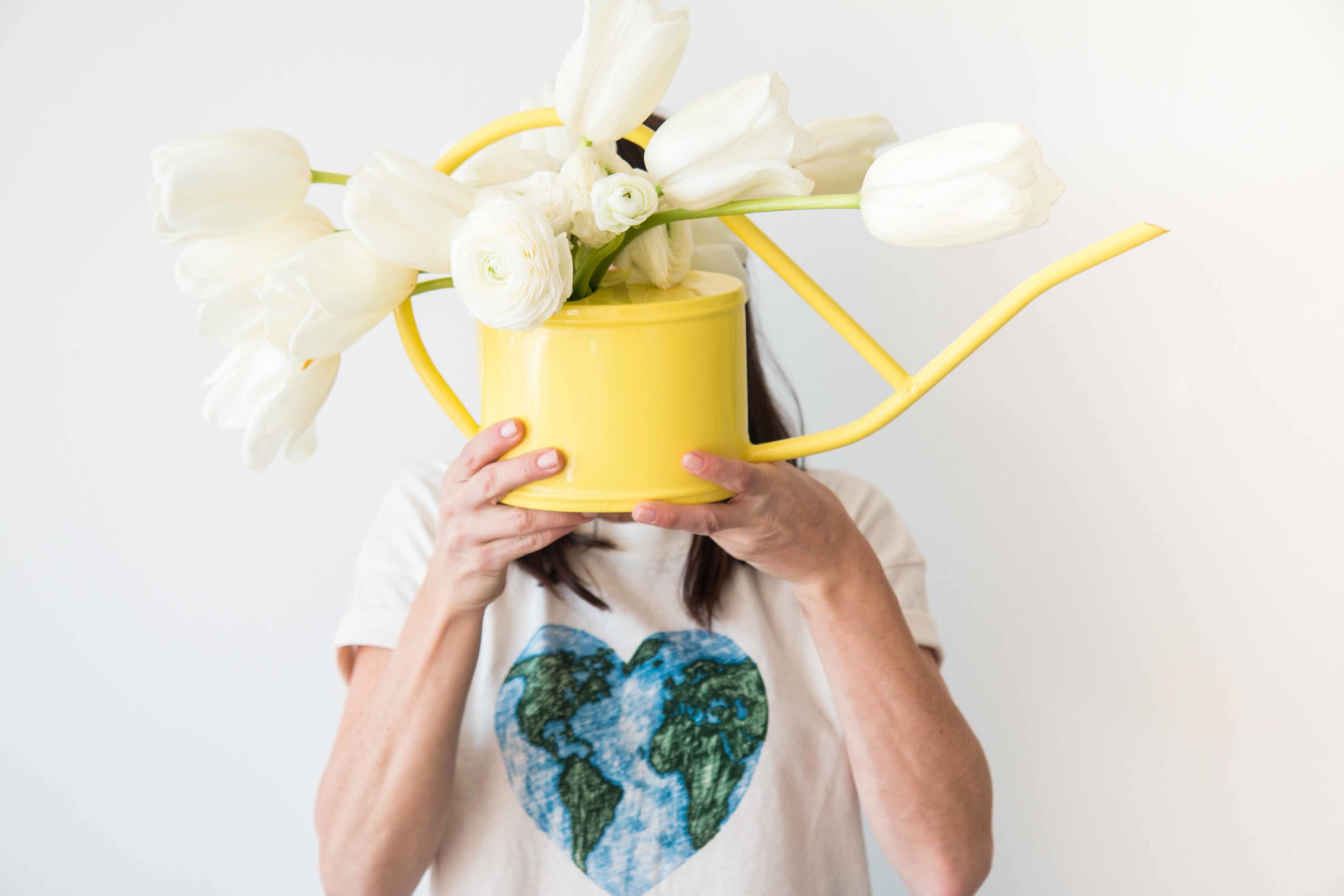 We transformed this idea for this year's Earth Day shoot after Seri found some amazing herbs at the farmer's market. She planted them in her favorite CB2 pots so she can continue to use them while cooking throughout the spring. Avoiding buying the packaged individual herbs at the store is SUCH an easy way to reduce plastic consumption.