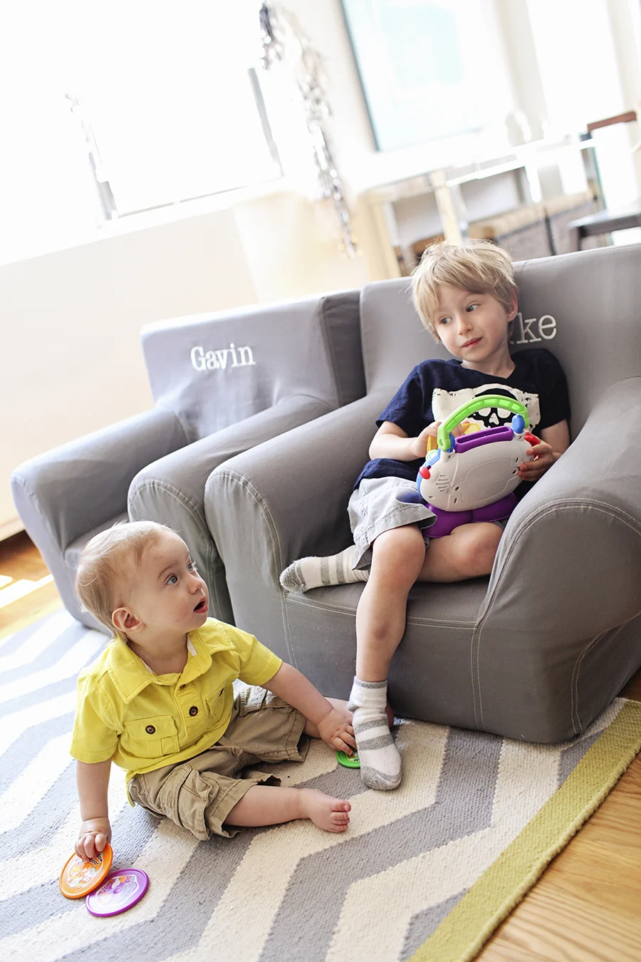 Where are these chairs from you ask? Are you dying to know? Urban Outfitters. Sick right? And they make for extra seating…brilliant! You’ll also notice above the chairs are pictures of my gorgeous (ha!! What? They are.) children. These were also shot by Miss Raquel who is incredible with these lil guys.