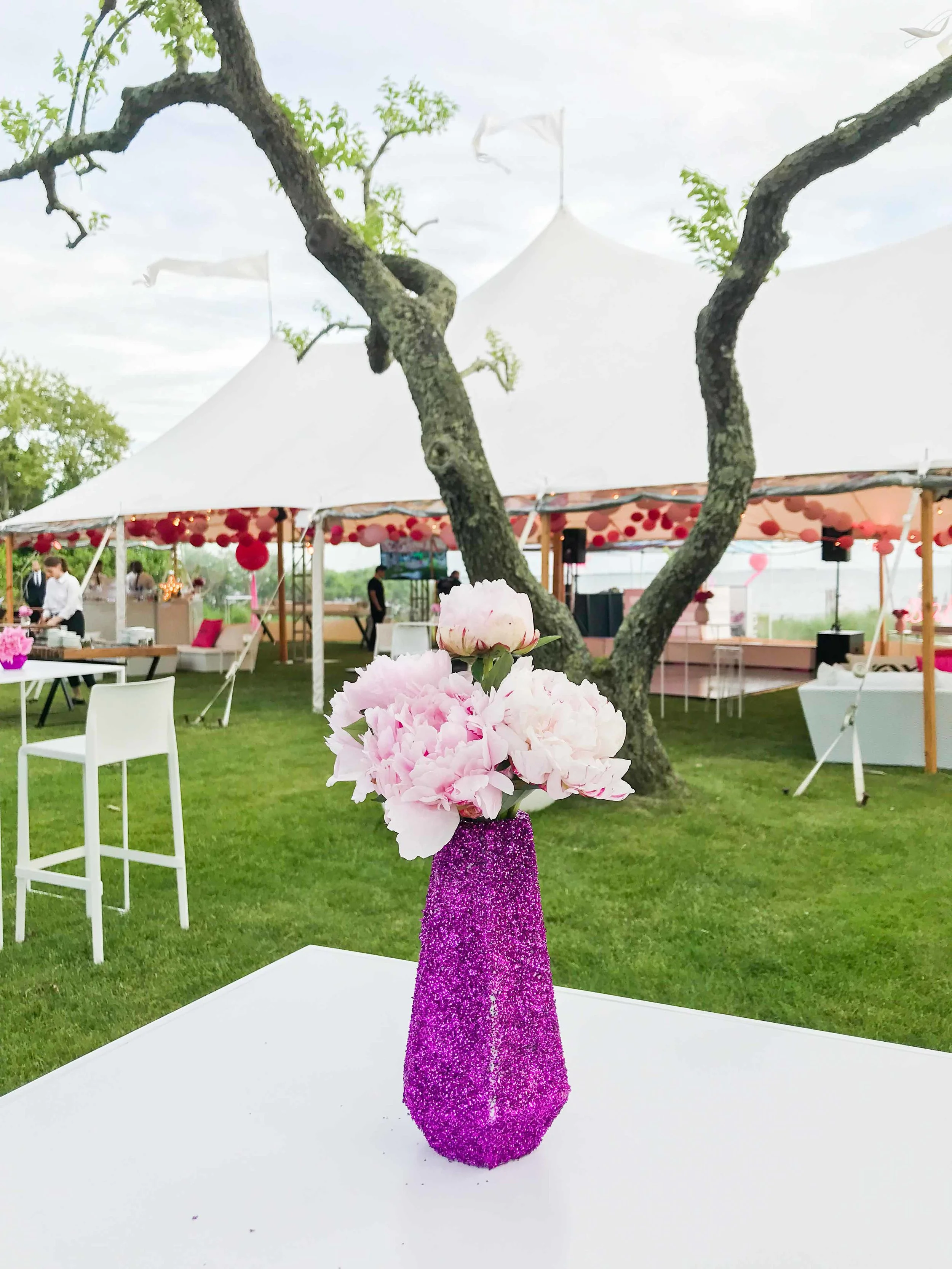 And voila! Perfectly glittery vases made for a stunning centerpiece to all the tables at this party.