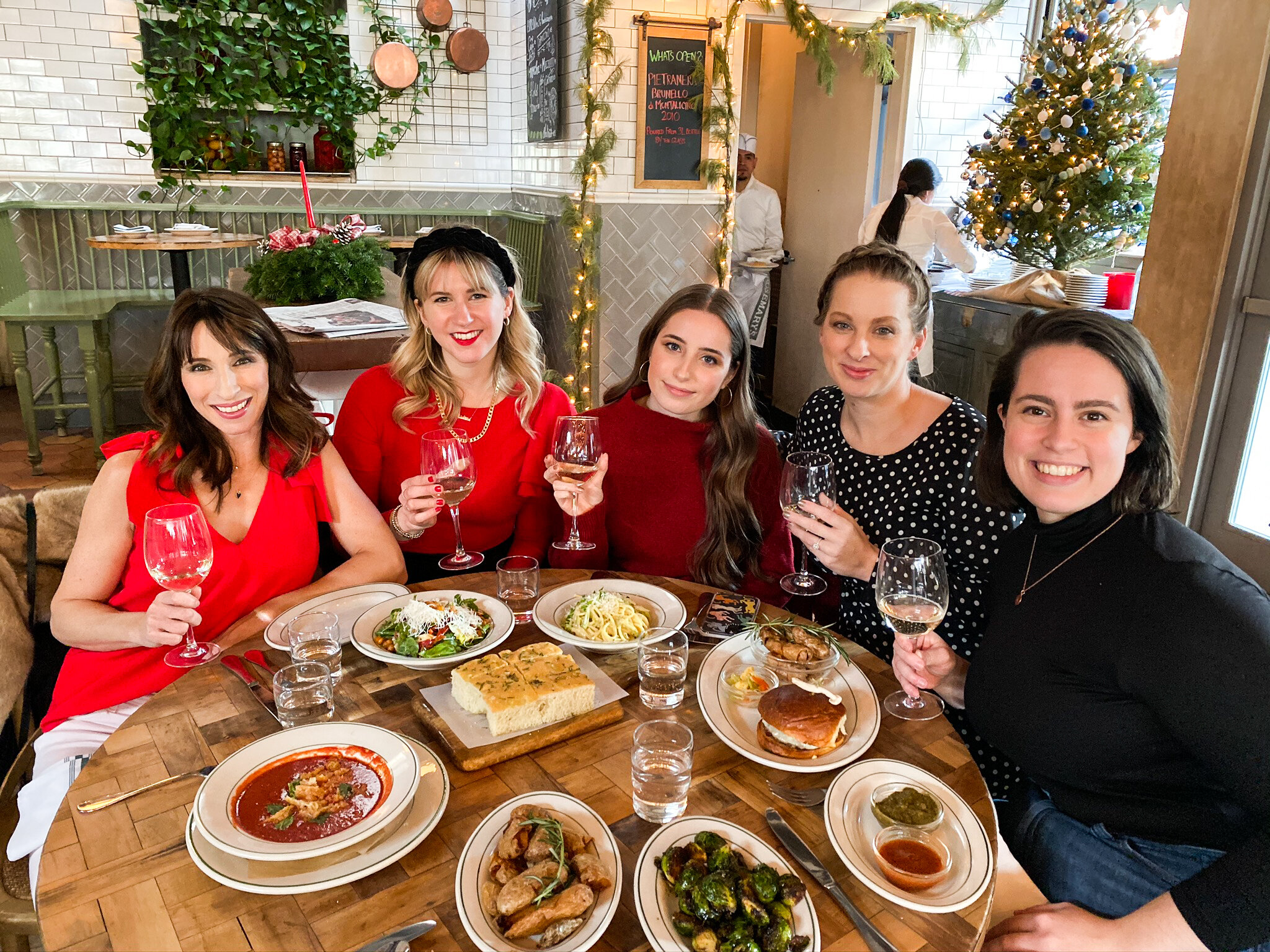 Not only that, but Seri brings the team out to lunch, we hold a gift exchange, and we set up for a fun night together. Throughout the day, we spend time reflecting on the year and enjoy quality time together. We started off the day by getting our makeup done but our talented friend Katie Lugo, who you can reach through her instagram! Then we headed out to one of our favorite local spots, Rosemary’s (as recommended in Seri’s LMP Restaurant Hit List), where the chic interior was feeling perfectly festive.