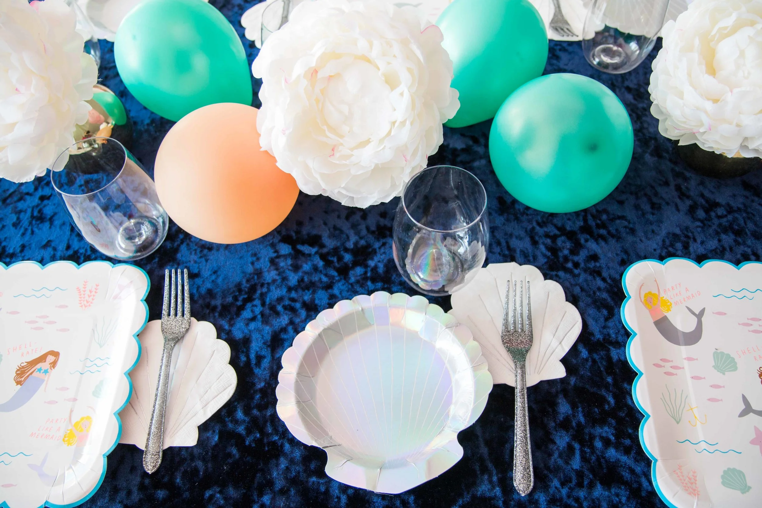 Here at LMP, we specialize in fun, beautiful parties, many of which are for children. We’ve done lots of different themes in the past like Barnyard Bashes, Safari Firsts, and Around the World Bat Mitzvahs. Well last week we had the pleasure of setting up the prettiest mermaid themed birthday party after we received an order online for a custom girl’s birthday box. It also just so happens that Erin, a friend of Luke, Seri’s son, has a birthday coming up…. So what better way to surprise her for their playdate than a cute & easy party set up.