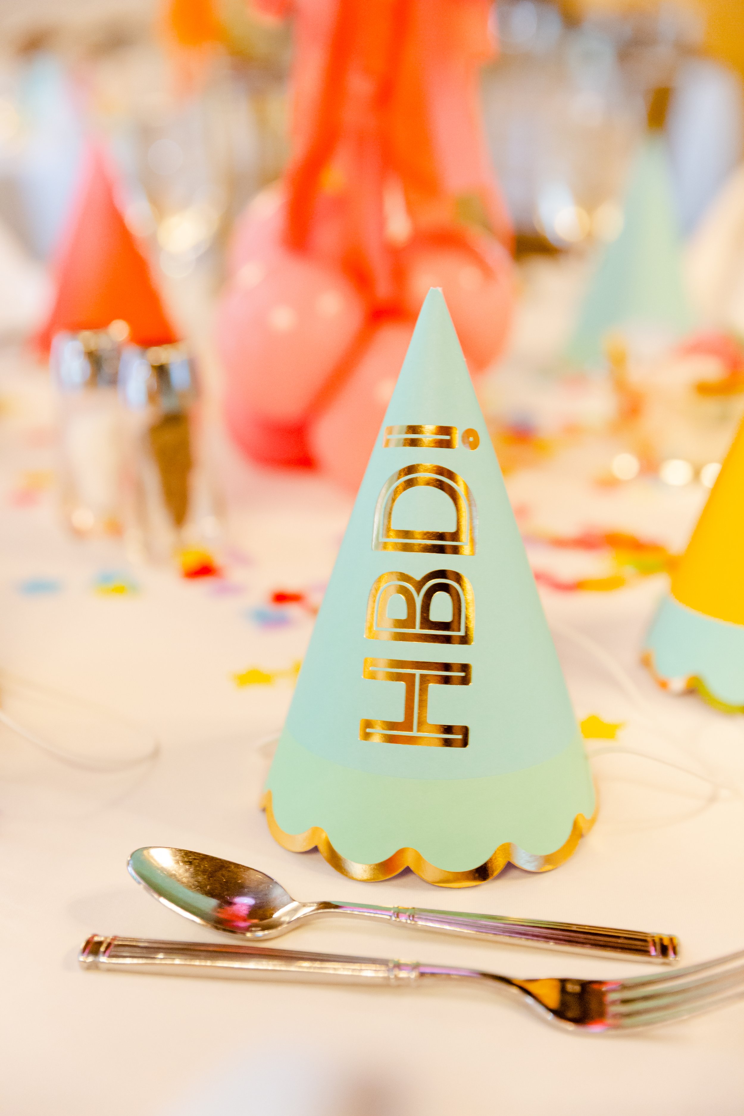 We made sure to tie in the theme in other ways as well like including rainbow birthday hats at each seats for all the guests.