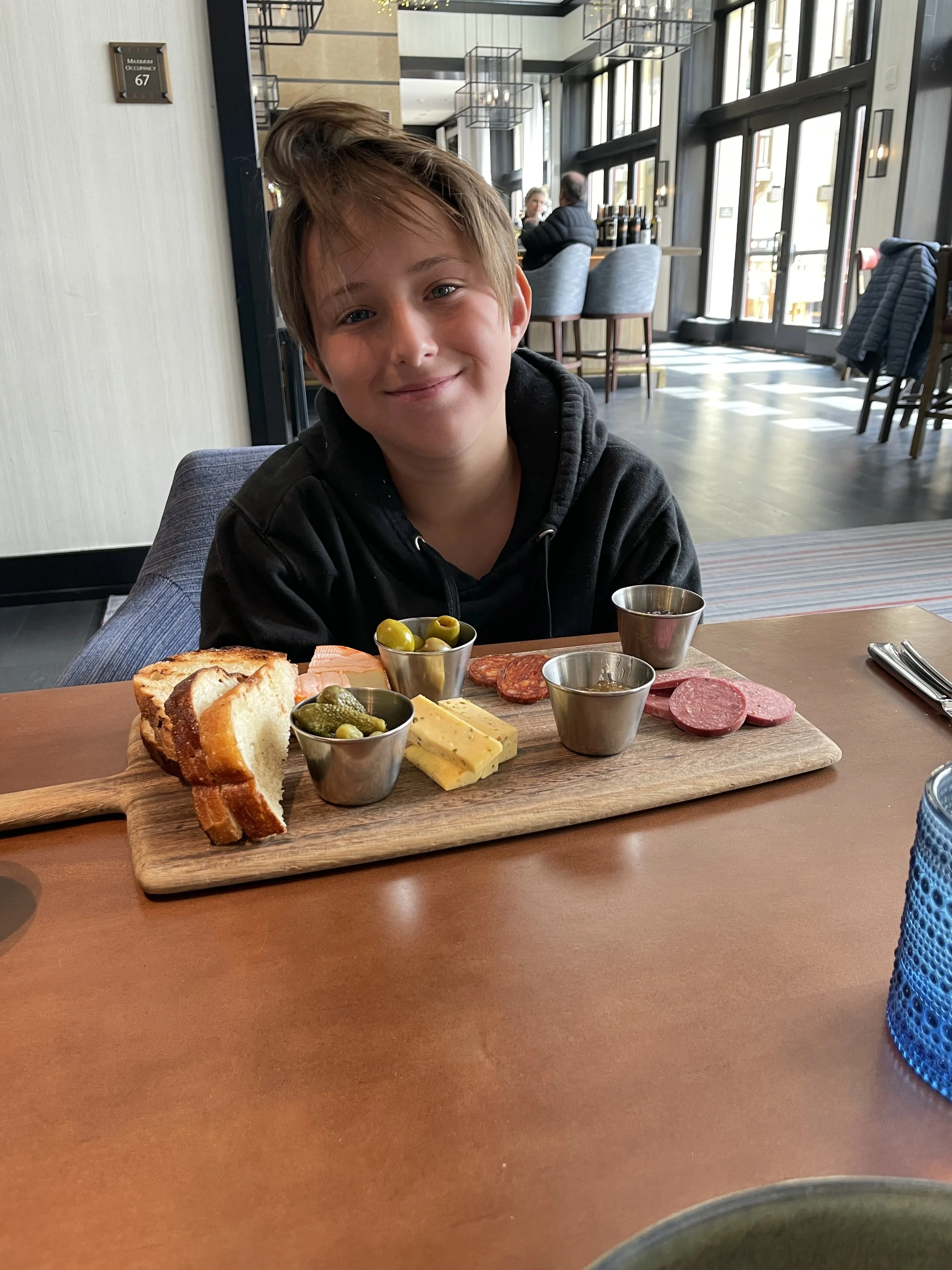 Luke and I arrived just in time for a late lunch. Had a bite and then got him fitted for skies at the rental location in the hotel. Was super easy. It was too late in the day to ski so we went to explore Vail Village which was a quick walk through the back of the hotel.