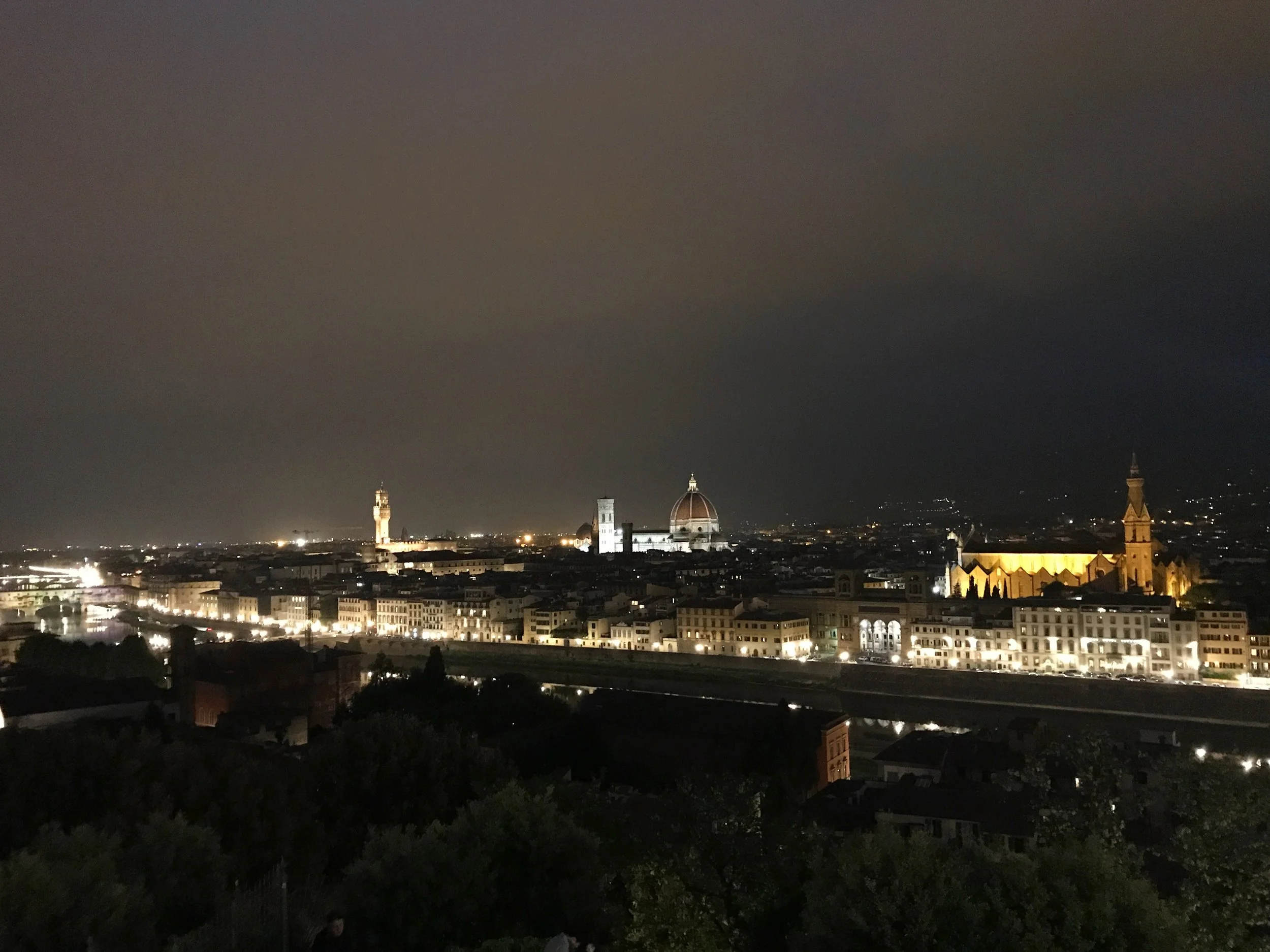 SIGHTS: Piazzale Michelangelo: This Piazza overlooks the river and all of the city of Florence. It is a bit of an uphill hike, but the view is beyond incredible, and a great way to justify drinking an entire bottle of wine at the top! I'd recommend heading up a half an hour before sunset, bringing wine and snacks, and staying up there until after dark when you can enjoy the view of the city lights.