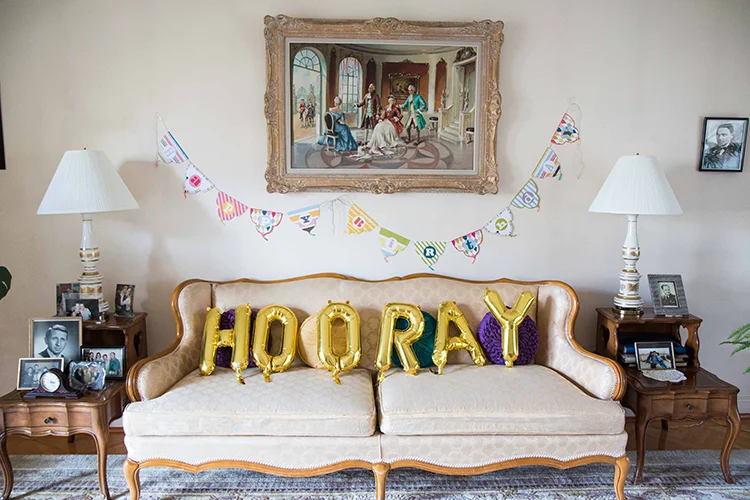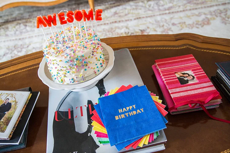 Mandy joined us and prior to the trip we came up with a plan to decorate Boobie's living room and surprise her for her birthday. Mandy picked up my a confetti sprinkle cake and I brought home some of my favorite party supplies from the Little Miss Party Shop.