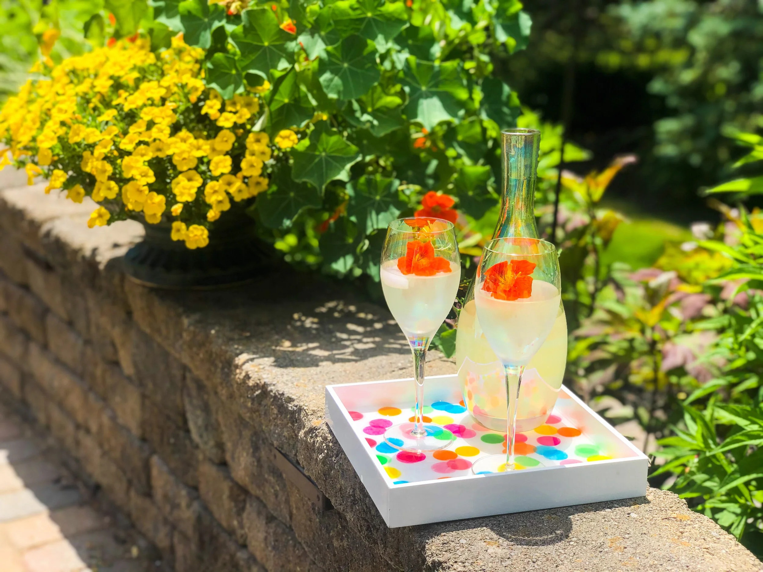 If you have access to some edible flowers, I highly recommend adding them into your drink for a POP of color to pair with your tray. This color combo couldn’t be more perfect, and this refreshing vodka-lemonade was exactly what I needed to kick off the month of July.