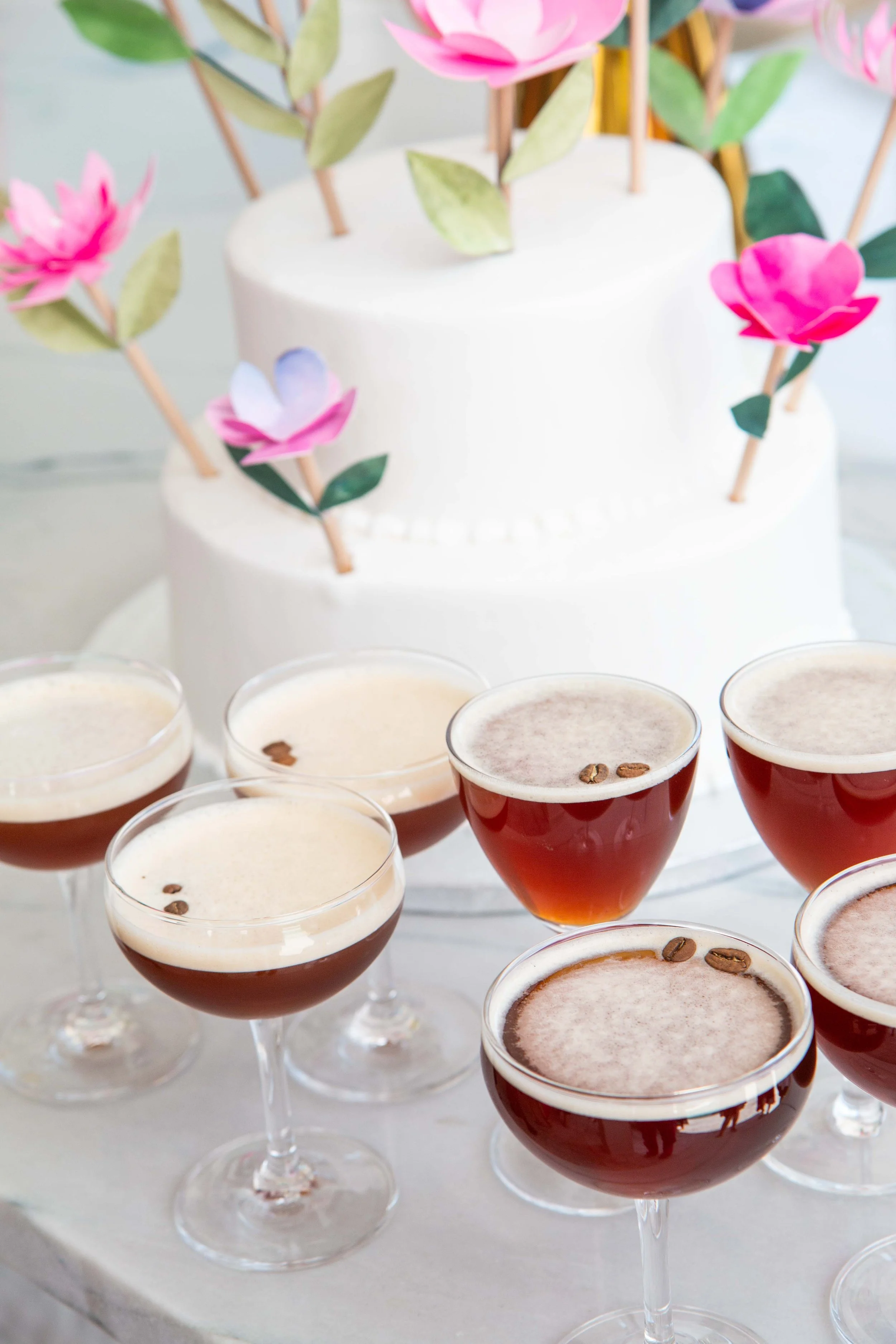 For a little entertainment, I hired a Mixologist to come in and demo a couple of cocktails for my guests to learn how to make and sip on during the party. Our Mixologist Ashley asked me what I wanted her to make and I hands down knew that first on my list was an Espresso Martini. It played into our tea party theme so well and is such a trendy cocktail right now AND the best part was … Ashley made a MEAN Espresso Martini that everybody loved! For the second cocktail which we enjoyed over dessert, Ashley shook up a Strawberry Green Tea Vodka Sour and served these in our special tea cups that everyone then took home at the end of the party. Ashley shared her recipes with me so I could share them here - Yay!