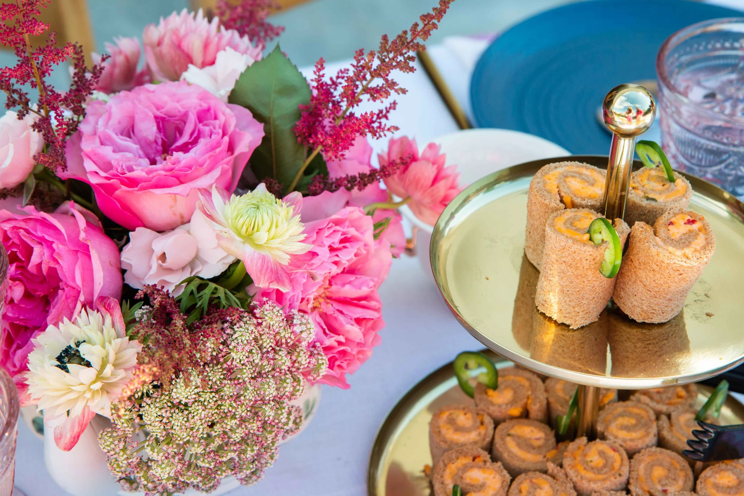 When I first started planning this party, I quickly decided to bring in a chef instead of taking on the meal myself. After a quick search on the Facebook groups that I now belong to here, I found Jessica Day Healthy Gourmet. She had a tea party menu on her website and it was too perfect for my party. I worked with Jessica to use my platters which she picked up a few days prior to the party so she could plate everything directly on there. Here’s how the menu played out:
