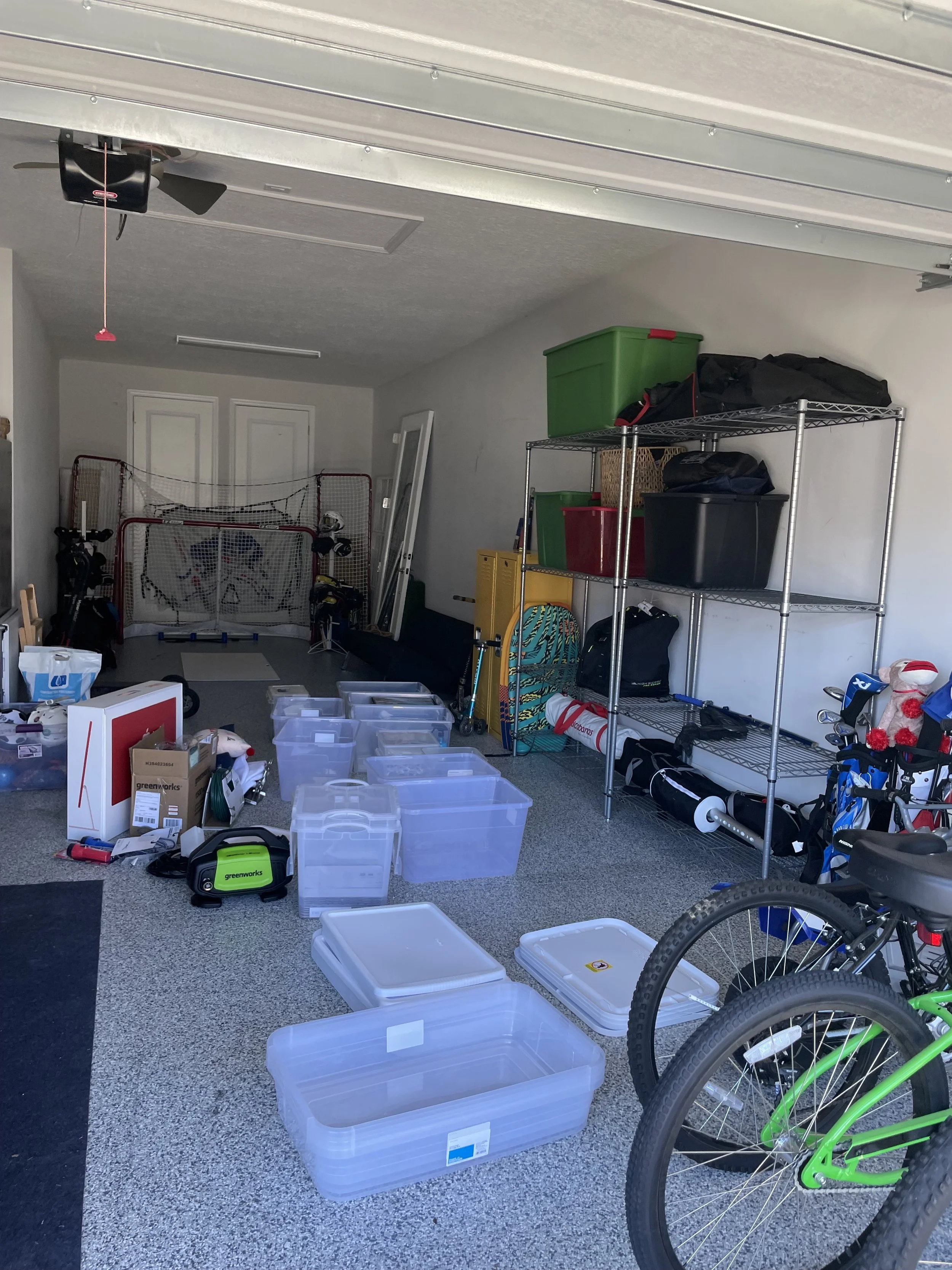 One of the great benefits of having an organized garage (or any space really) is that you can then maximize the area you’re working with because you’ve freed up space. In our garage, we have an indent that is intended for an extra car but I turned it into a hockey “arena”. I set up a huge hockey net, a shooting pad, a basket of pucks, an old broken couch that found new life for the kids and their friends and a hockey equipment drying station for airing out their gear post practices and games. Everyone asks me about the drying racks so I’m linking them here - they are incredible. The kids absolutely love this hockey den and use it all the time to work out, practice shooting and hang with their friends.