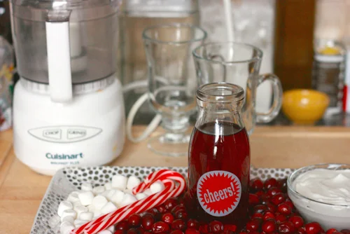 Just as smoothies are often left behind as temperatures drop, fruits who reach their peak in the wintertime are frequently overlooked. So when Seri asked me to come up with a winter smoothie for the boys, I immediately looked to some underutilized winter fruits as inspiration. And what better timing given that we heard from our friends over at Williams-Sonoma it's Smoothie Week! I enlisted the help of sous chef Luke, and together we brainstormed winter flavors. Luke wanted to use cranberries, which I thought, combined with Greek yogurt and honey, would make an excellent base to build the rest of the recipe around. You know what else came to mind while putting these recipes together? GIFTS! How fun would it be to give a Williams-Sonoma blender to someone for Christmas?! I would put it together with a couple pretty glasses, my smoothie recipes and some stripe paper straws. FUN! Here's how we whipped up this light, festive and wintry smoothie: 1 cup cranberry juice (we used cranberry raspberry) ½ cup unsweetened coconut milk ½ cup greek yogurt, plain 1 tbsp. of honey 5 cranberries 5 ice cubes Pinch of sugar to taste Combine all ingredients in a blender. Now for the fun part: candy garnishes. The healthy winter smoothie can easily be transformed into a winter dessert by adding a few marshmallows on top. Stick a Jolly Rancher candy cane in there and your little ones will devour the whole glass. We also came up with a citrus smoothie inspired by of all the runny noses in school these days and in hopes of strengthening our immune systems to stay healthy as the weather turns chilly. Mulling wine was fresh on my mind from Thanksgiving, so I knew that oranges would be a great compliment to cinnamon. Citrus tends to be at its ripest during the colder months, so the wintertime is a great time to take advantage of their juicy goodness. To thicken this smoothie we added a banana and we toyed with a persimmon which also made for a bright and festive colored garnish on our cups. Here's how we whipped up this orange smoothie: I cup orange juice 1 banana 1/2 cup coconut water 1 tsp of cinnamon 1 thick slice of persimmon, cut into chunks (peel removed) A few ice cubes Combine all of the ingredients above and top with a splash of sparkling tangerine juice. Enjoy, stay warm and CHEERS!