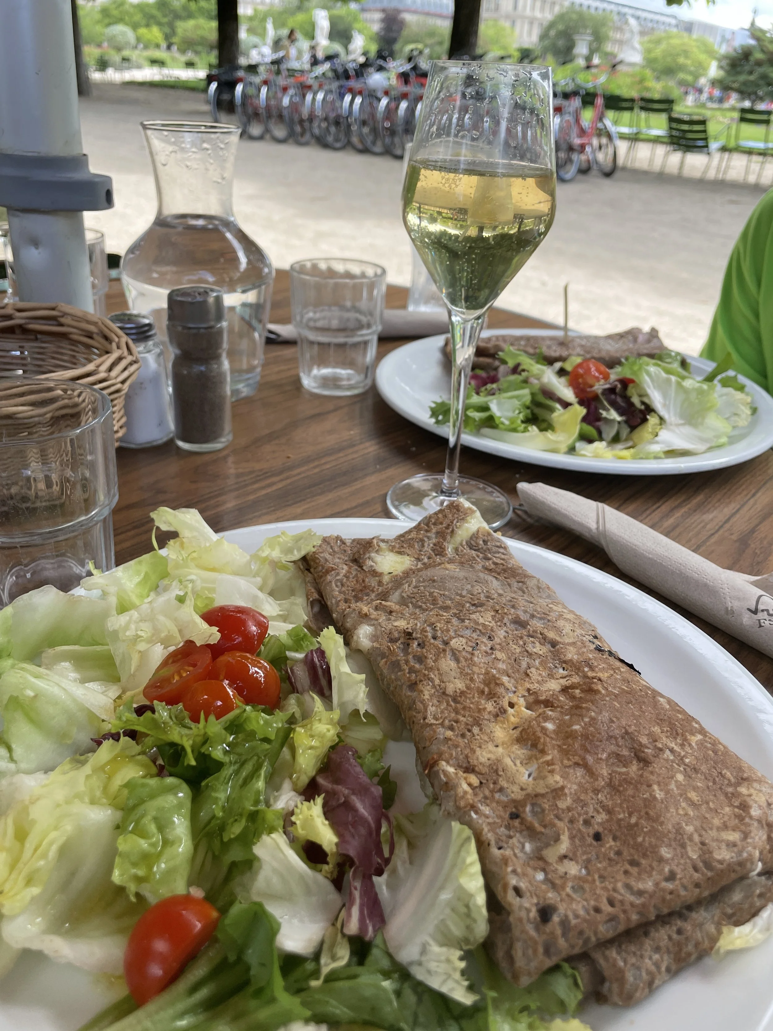 We got to stop for lunch at a beautiful, outdoor cafe in the Tulleries Gardens where we joined a few new Australian friends from the bike tour to eat (and have champagne!) with.