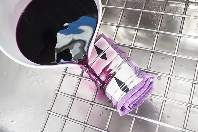 Shibori is a Japanese form of dyeing fabric that consists of binding and folding fabric to create amazing patterns. It's usually done with indigo dye, but I had a vision of deep purple napkins for my tablescape, so I veered a little bit away from the norm. Regardless of the color....the results are GORGEOUS! There are endless ways to fold and bind the fabric, but I used a very simple and straightforward method. Here is what you will need :