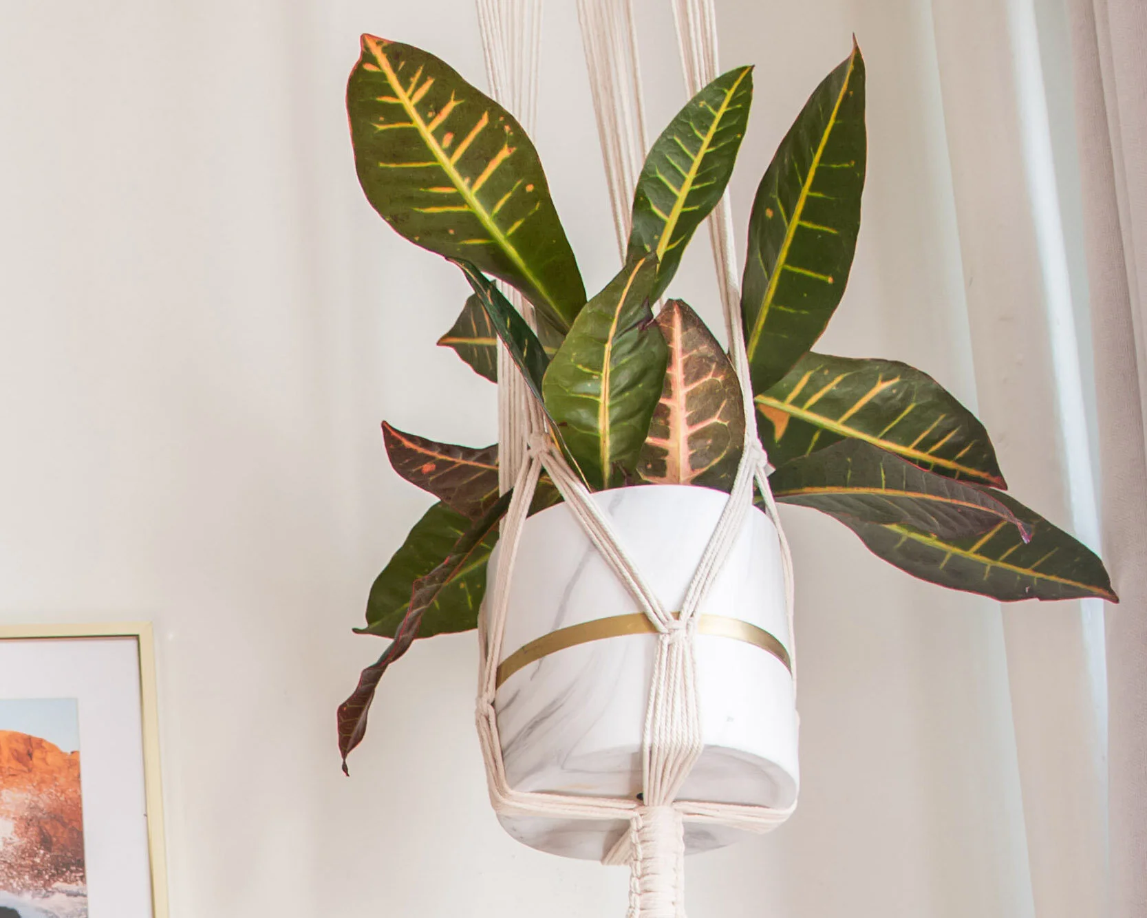 These plants are absolutely stunning. I’m showing you 2 photos here because the smaller one was my first purchase and it did NOT survive. It really got crunchy and brown and didn’t like the heat of my apartment - I think! I’m still figuring out the best spot for him. I bought a new one, the tall one pictured, and really hoping a little extra shade does well. It doesn’t need tons of water, only once a week, but when you have a big pot you have to make sure to really soak it well.