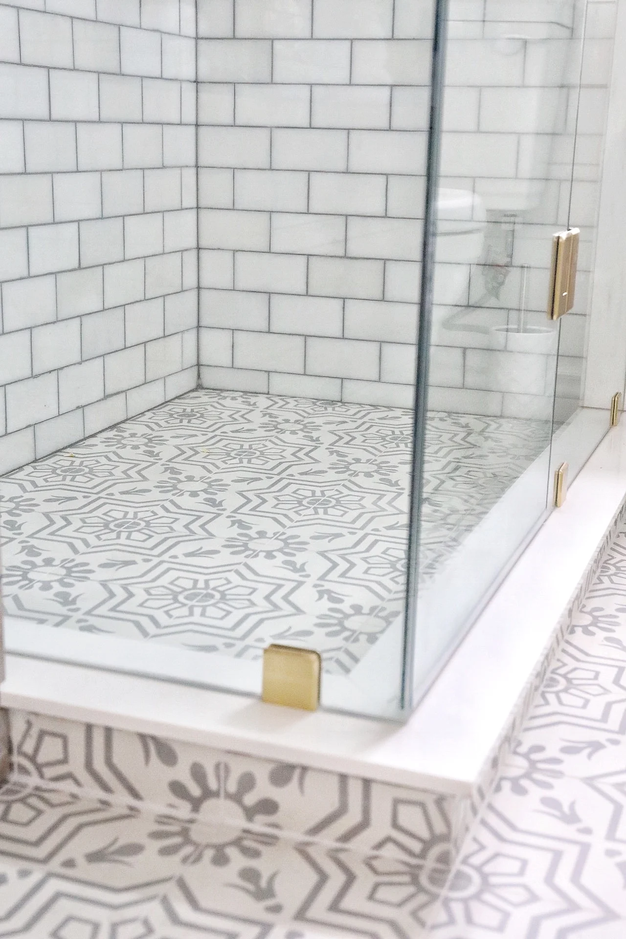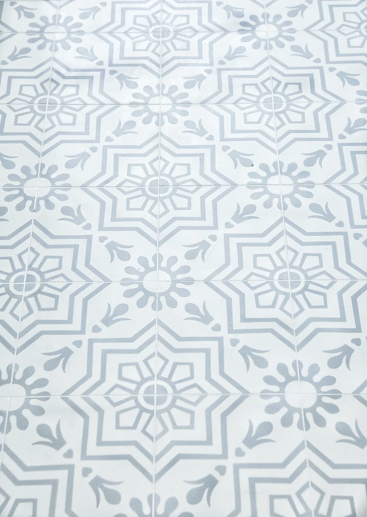 Let’s talk about another obsession of mine. The floor tiles! I found them online at the Cement Tile Shop and went nuts for the patterns they have in their vast collection. This stunner is the Leon I and was my absolute favourite pick. It’s a white and grey pattern that I couldn’t resist. I’m so happy with their amazing customer service and the quality of their product. This floor is definitely a winner and I highly recommend the Cement Tile Shop for your next makeover or renovation project.