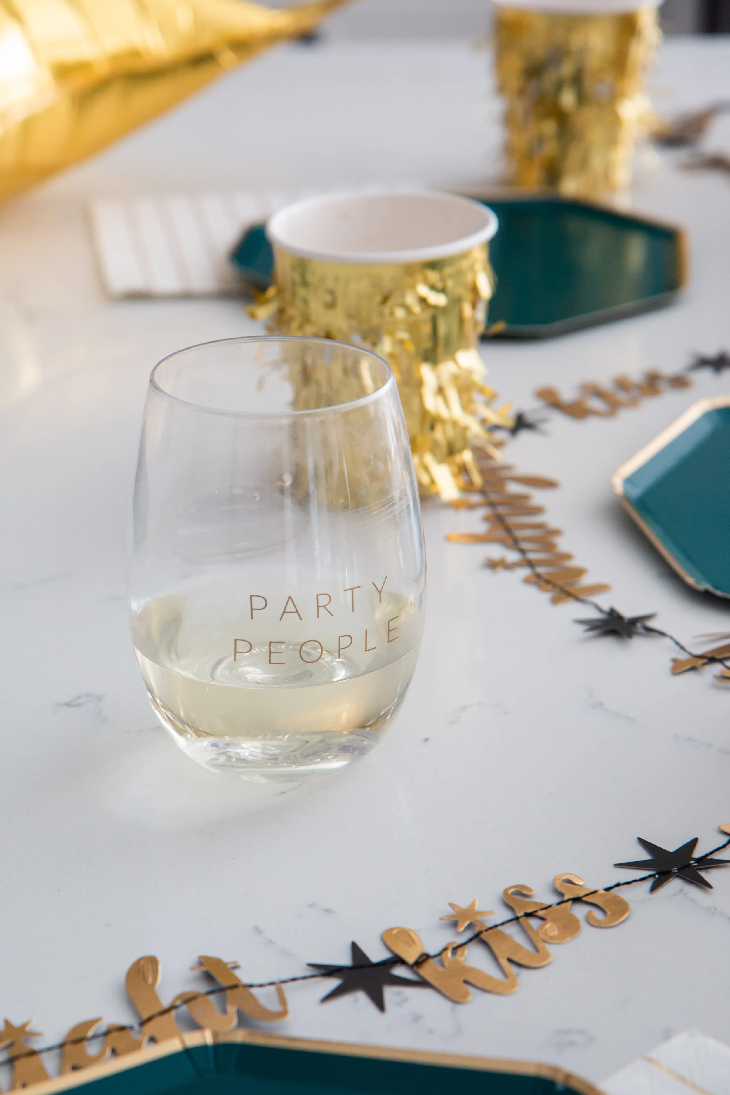 Next up - plan the decor….. And you already know we’ve got that covered with our New Year’s Eve Party in a Box. It’s glitzy yet neutral which means you can reuse any of the decor in this box well after the holidays! Especially our Party People champagne flutes, which are an add on item for this box. They are reusable and dishwasher friendly, and we seriously use them all the time!