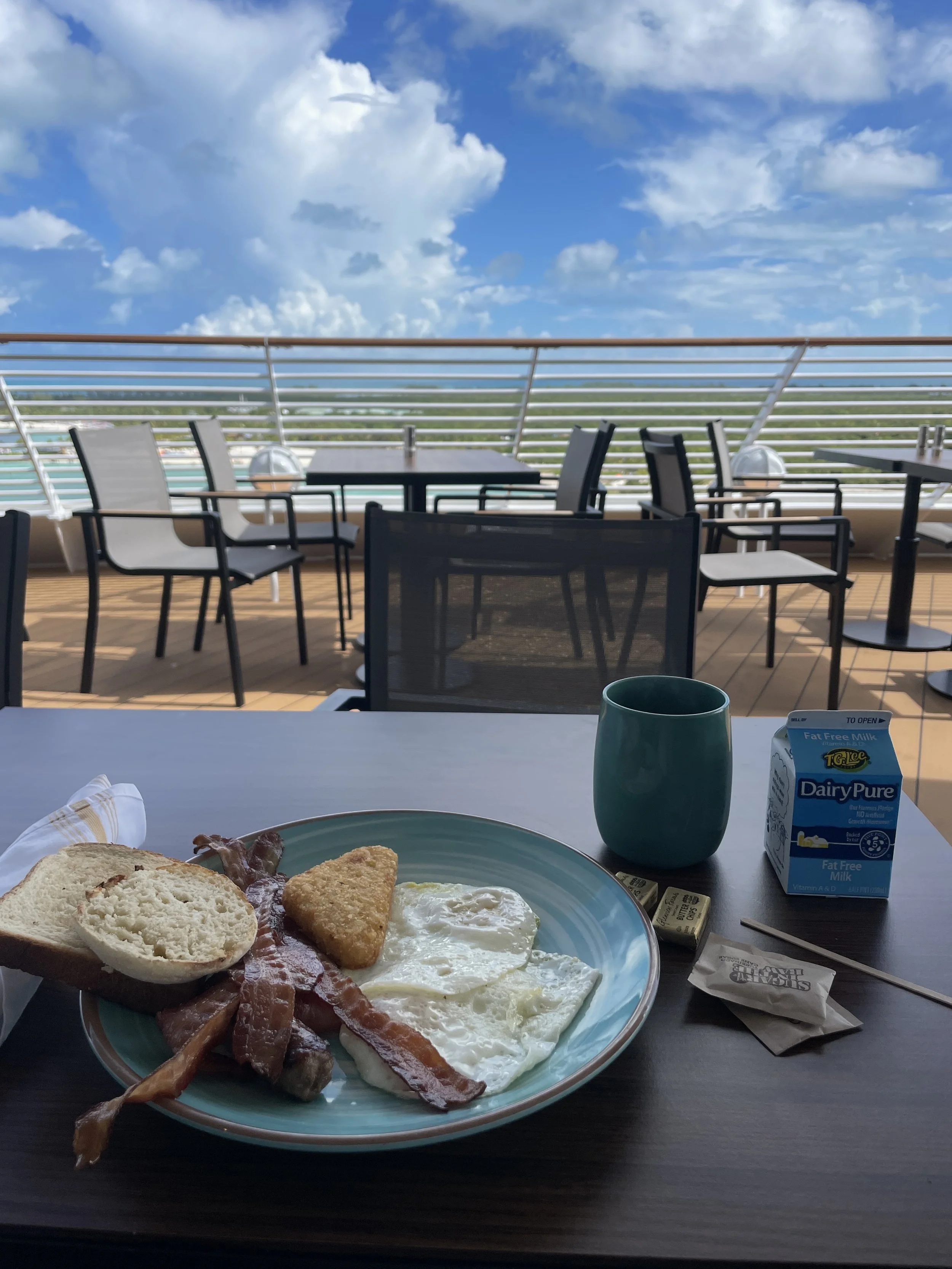 Let’s talk about the food. Oh the food. I LOVE all you can eat I just love love love it. Without going through every food option on the boat (because there are so many!) I’ll highlight my faves. First off, in the morning, there’s a buffet in the market that is outrageous. My advice: Don’t go at prime time. Gets pretty packed and it’s hard to find a seat and there are lines for food. I’m not into this.. Go early or late! With my boys sleeping till 11am every morning, I was able to hit up the market around 10am which was such a lovely time to be there. I’d load up on eggs, hash browns, bacon, fruit and coffee and parked myself outside in the beautiful sun. There are TONS of staff working on this cruise so the tables are always clean and the food is always plentiful. Everyone working there is so helpful!