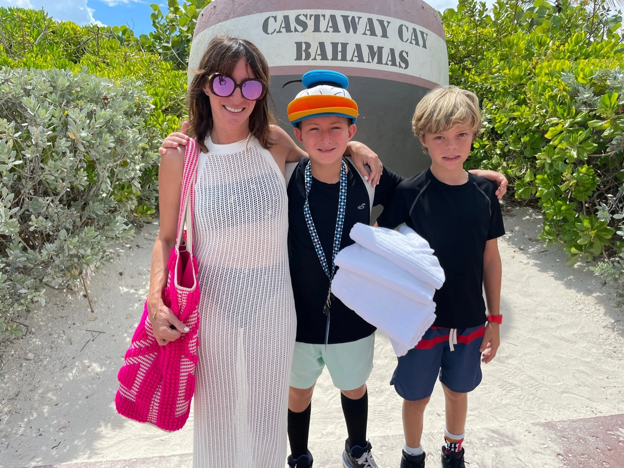 We had decided we wanted one day on the boat to enjoy all that there is on it and one day off. Of course we chose to get off the day of the Disney private island which was in the Bahamas and called Castaway Cay. Once again, I was blown away by the cleanliness and thoughtfulness on this day trip. The water was bright turquoise and gorgeous, there were plenty of chairs on the beach, they gave us towels as we got off the boat, the food was delicious and extremely plentiful and there was tons for the kids to do. We spent the day in the sun going down the water slide 4000 times, rode a paddle boat and went on a long bike ride. It was so lovely.
