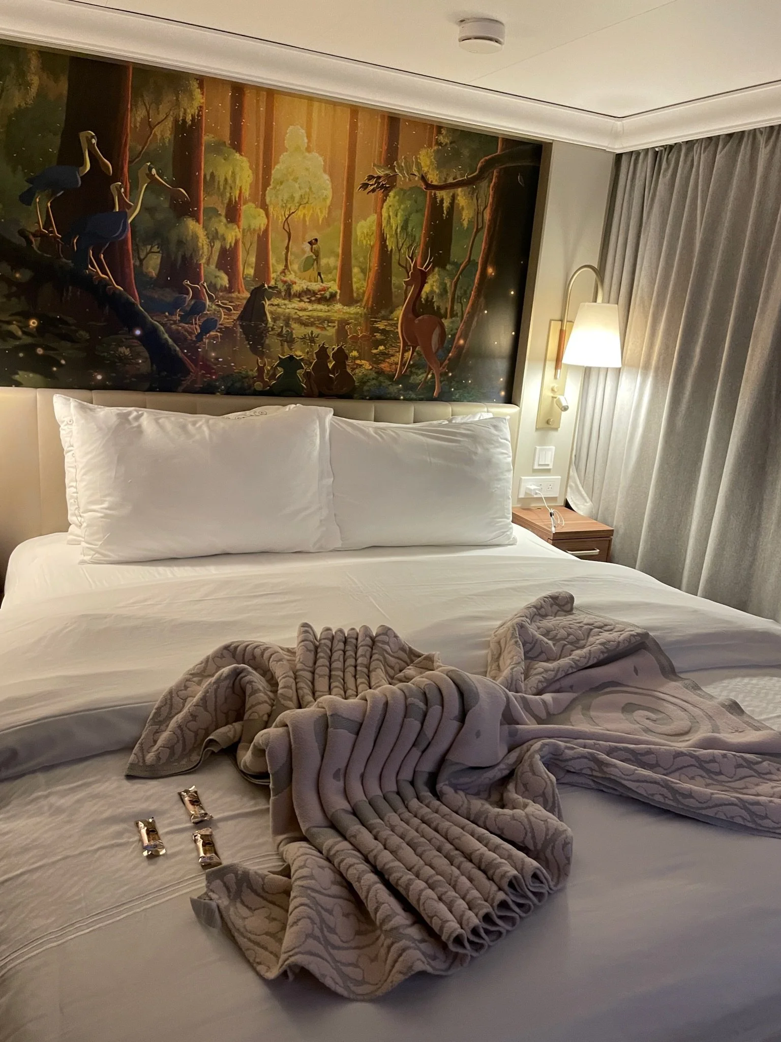 Couple other notable points regarding the room which were quite meaningful to me were the abundance of hooks. I love this feature because we had a lot of wet bathing suits and towels to hang up each day. Plus there were tons of shelves which was so great for organizing all of our things and always knowing where everything was. Lastly, every night they would fold your towel in a character from the show that night. NICE TOUCH!