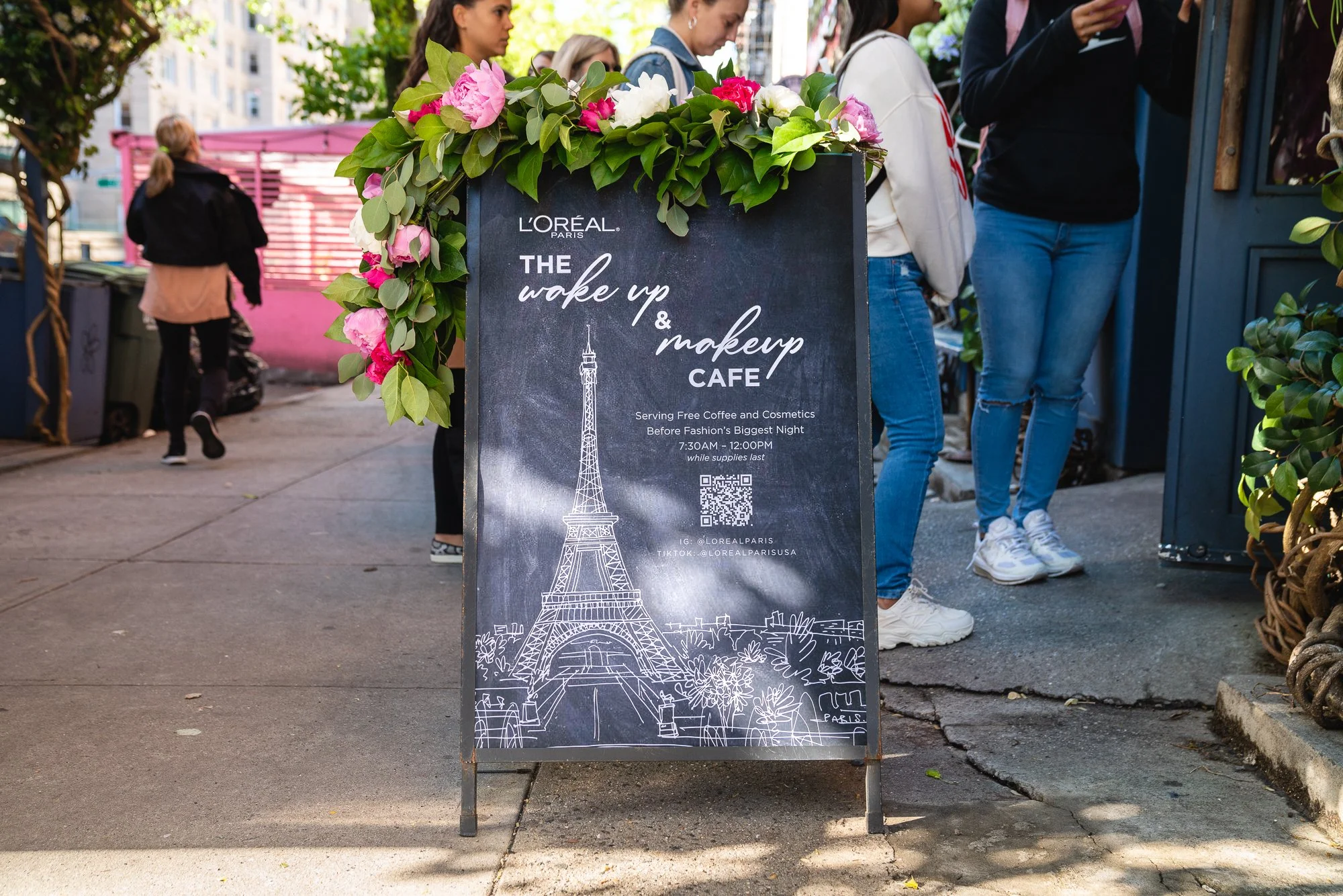 In New York City, on the first Monday in May, there is a huge event called the Met Gala. For this year’s gala, the theme was Karl Lagerfeld, honoring his legacy. L’Oréal hosted an event the morning of the Gala to draw in make up and beauty artists who reside in New York and were there to work the Gala to enjoy coffee, breakfast and a special experience with the product. To create a buzz and make for an engaging morning, they opened up a space for the general public to enjoy complimentary coffee, free product (for the first 200 consumers) and a lip bar where they had make up artists giving lip touch ups with L’Oréal lipsticks.